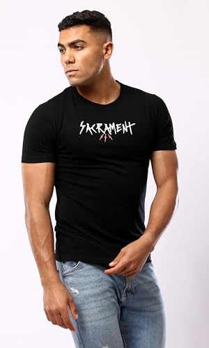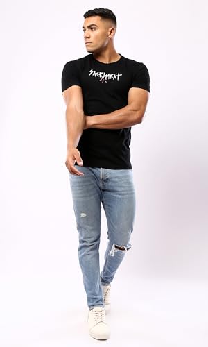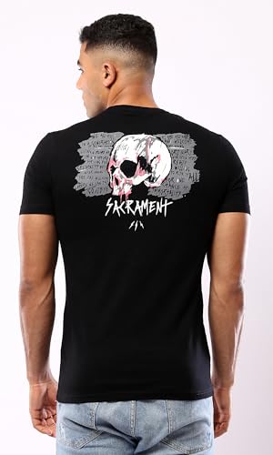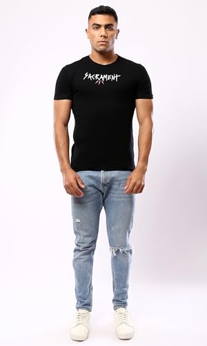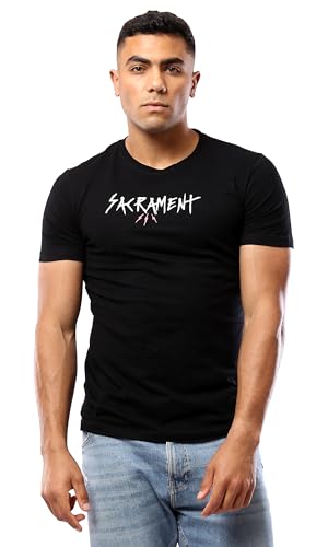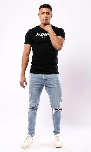 Ravin - تيشيرت كاجوال للرجال من ريفين، بأكمام قصيرة مطبوع من القطن، لون أسود، مقاس XL كاجوال