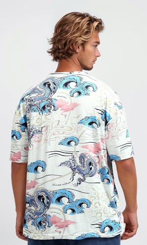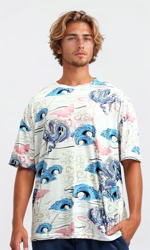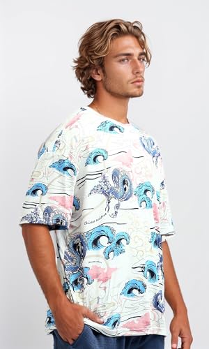 Ravin - تيشرت قطن سهل الارتداء بأكمام للكوع للرجال من ريفين، أبيض وبينك مودرن