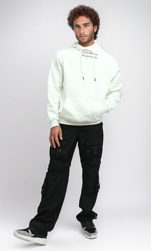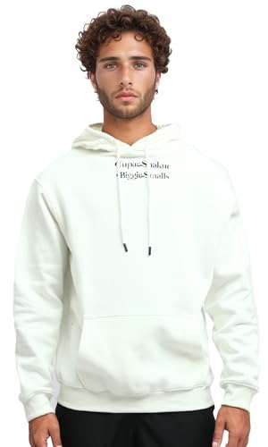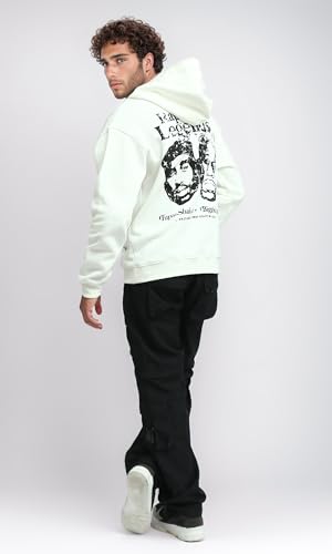 Ravin - سويت شيرت مطبوع سهل الارتداء بغطاء للرأس وجيب أمامي للرجال من ريفين - لون اوف وايت