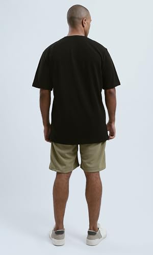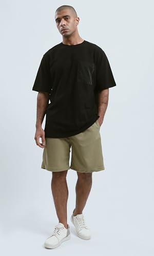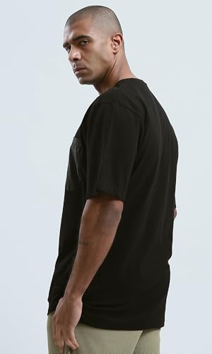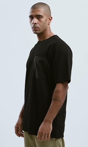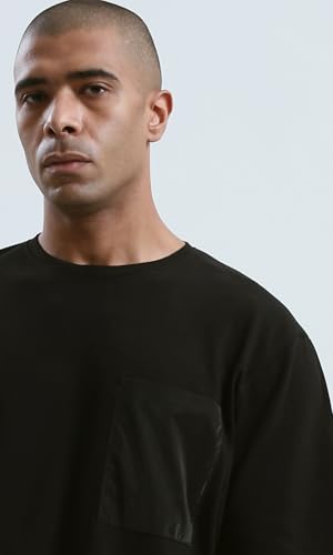 تي شيرت أسود سادة فضفاض مع جيب أمامي
