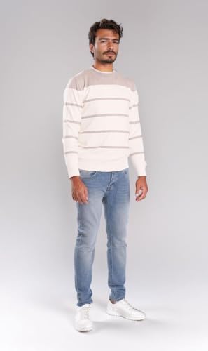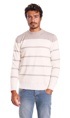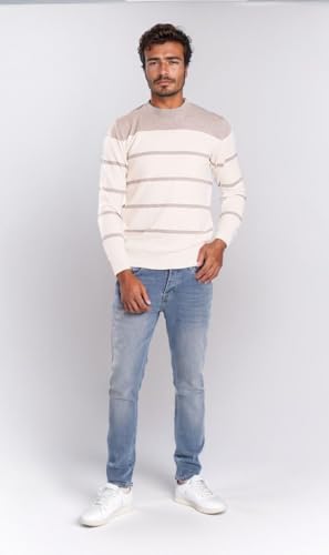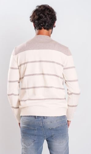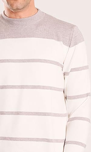 Ravin - ريفين سويتر منسوج مخطط للرجال - ابيض ورمادي، لون رمادي فاتح، مقاس XL