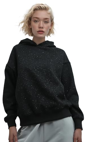 Ravin - هودي شتوي اسود بنمط جليتر، L