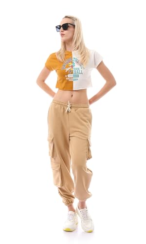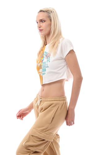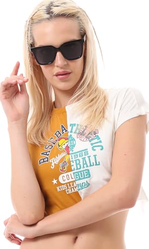 Ravin - ريفين تي شيرت قصير عصري مطبوع بلونين مسطردة وابيض للنساء