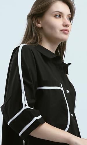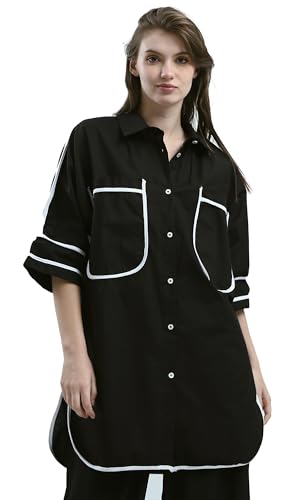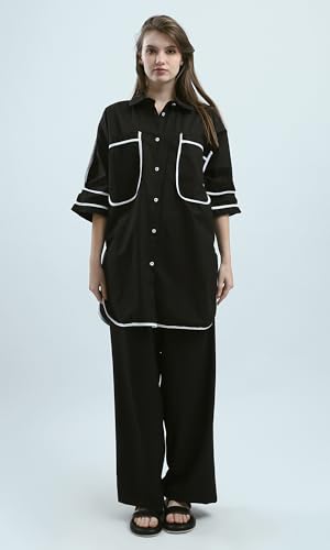 Ravin - قميص صيفي عصري بأكمام الكوع مع جيوب للنساء من ريفين، لون أسود
