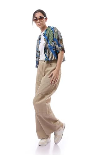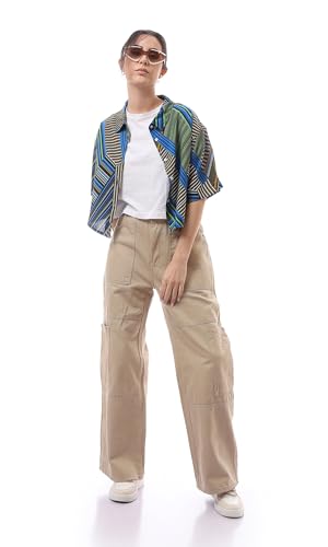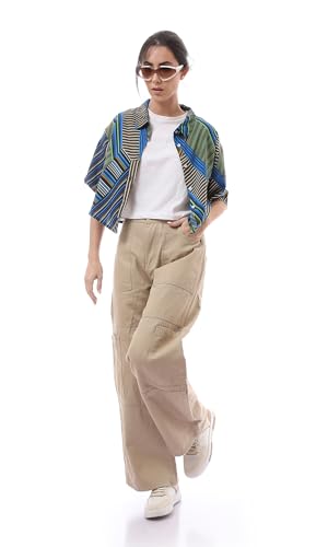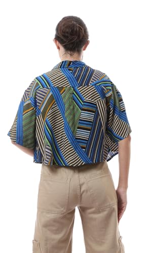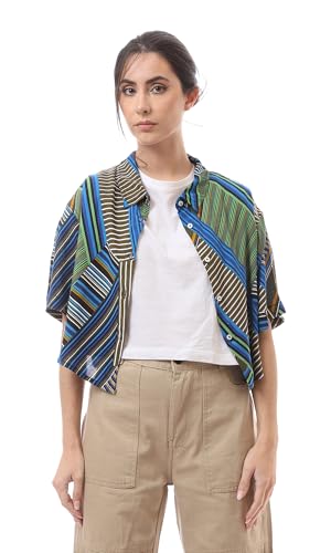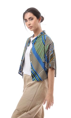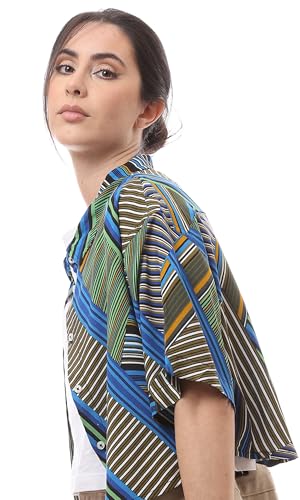 Ravin - ريفين قميص صيفي قصير عصري بخطوط متعددة للنساء بلون ازرق واخضر مينت