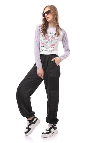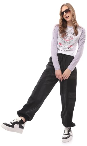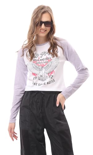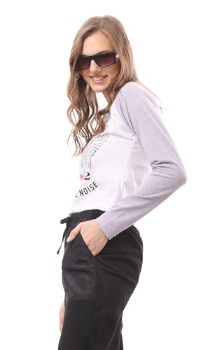 Ravin - ريفين تي شيرت قصير مطبوع عصري للنساء بلون ارجواني فاتح وابيض