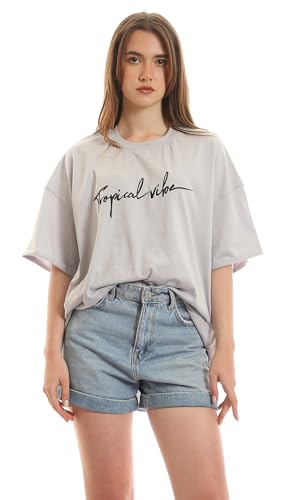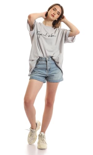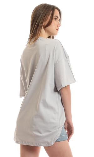Ravin - ريفين تي شيرت نسائي قصير من الامام وطويل الخلف بنقشة ذاتية - متعدد الالوان عصري