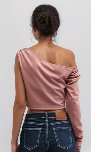 بلوزة قصيرة سادة بأكمام واحدة - لون خوخي