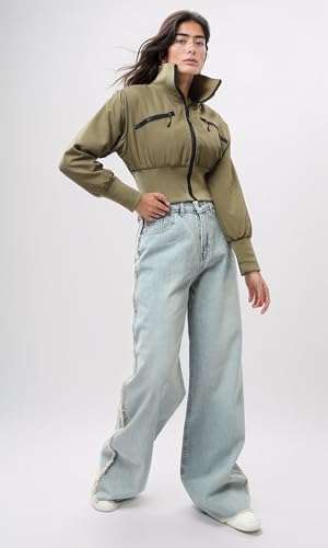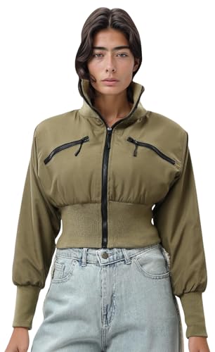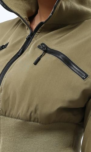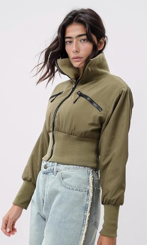 Ravin - جاكيت منفوخ قصير بأستك عند الخصر للنساء من ريفين، كاكي غامق