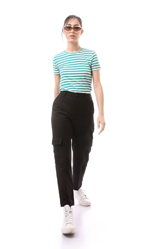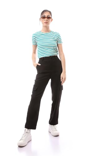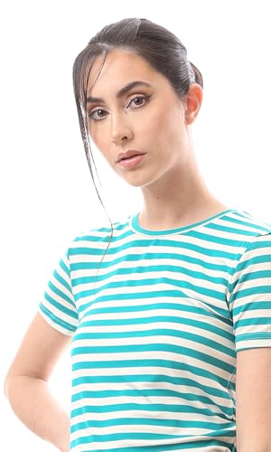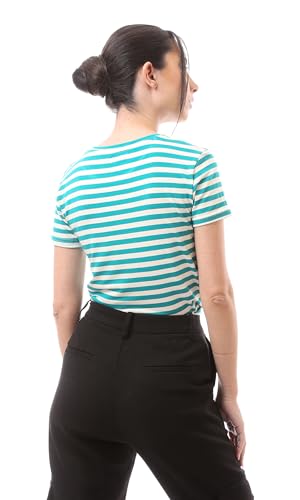 Ravin - تيشيرت للنساء صيفي عصري أنيق مخطط بأكمام قصيرة من رافين، ألوان تيفاني وأبيض