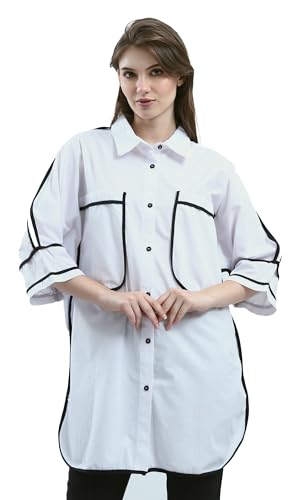 Ravin - قميص عصري سادة بأكمام بطول الكوع وأزرار للنساء من ريفين