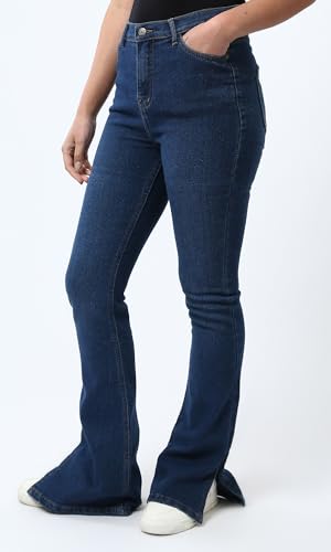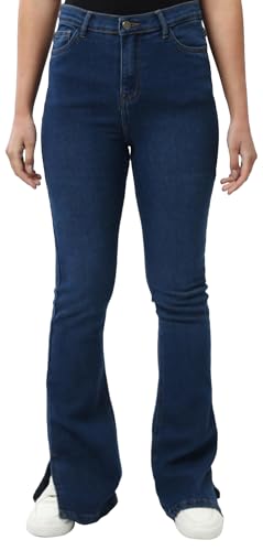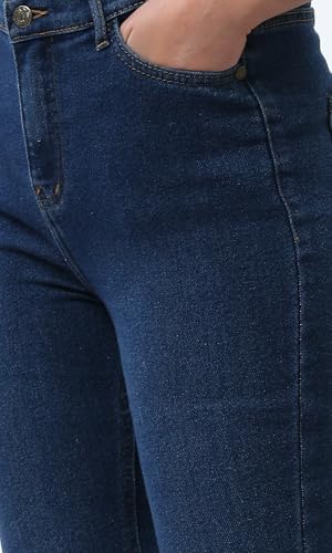 Ravin - بنطلون جينز بقصة واسعة كاجوال سادة للنساء من ريفين، أزرق غامق