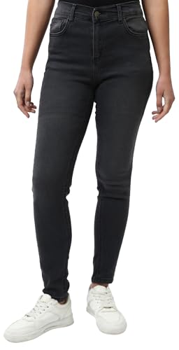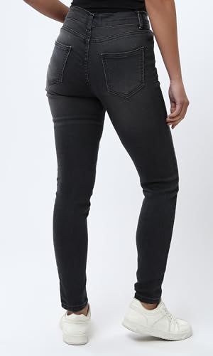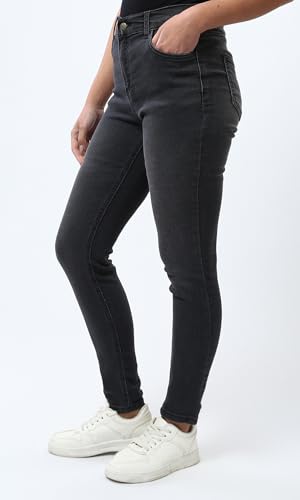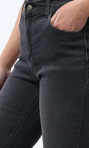 Ravin - بنطلون جينز كاجوال سادة بقصة سكيني للنساء من ريفين - أسود