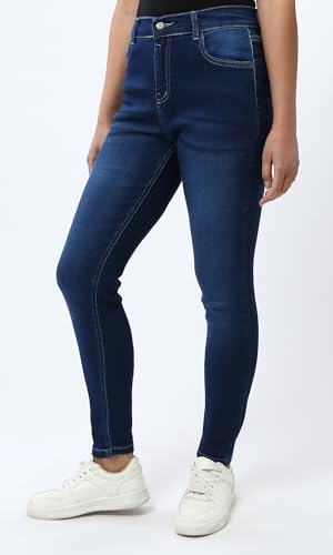 Ravin - ريفين بنطلون جينز سكيني كاجوال سادة للنساء - بنطلون ازرق كحلي