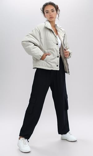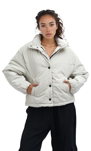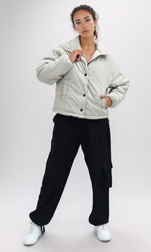 Ravin - جاكيت شتوي سادة بسوستة وأزرار للنساء من رافين، بيج غامق