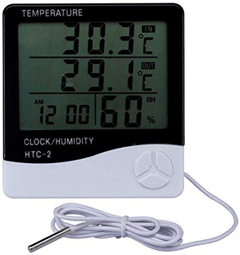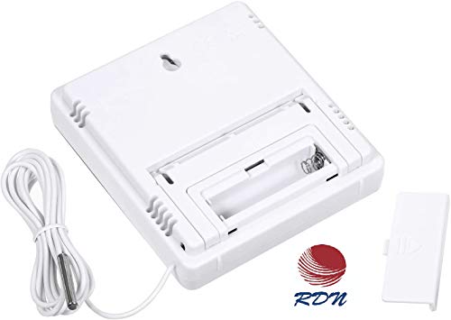 RDN - ساعة رقمية بشاشة LCD لقياس الرطوبة ودرجة الحرارة مع كابل مستشعر، لون أبيض من ار دي ان لجهاز - HTC-2