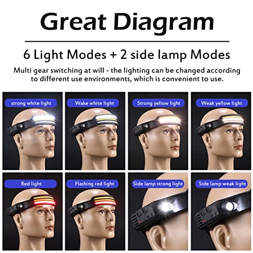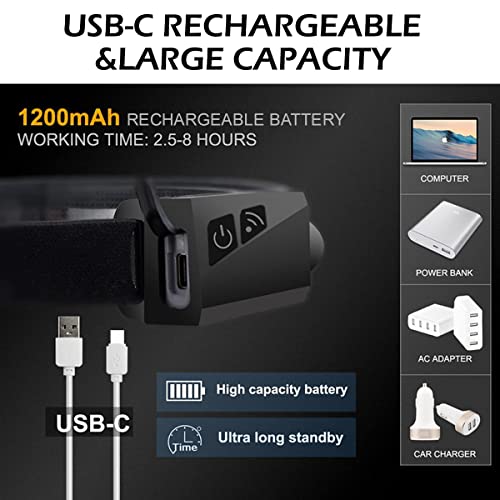 Daily Distro - شريط إضاءة LED قابل لإعادة الشحن، شريط إضاءة على شكل خوذة مقاوم للماء، مصباح أمامي للكبار للمشي لمسافات طويلة والتخييم والجري والأماكن الخارجية - قطعة واحدة