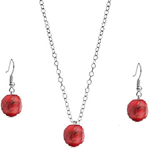 Generic - طقم اقراط مرمر احمر مع سلسلة بشكل متقاطع لون اسود، زجاج، للنساء