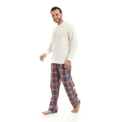 Red Circle - بيجامة للرجال من ريد سيركل بقبة دائرية مع بنطلون من القماش القطني القطني