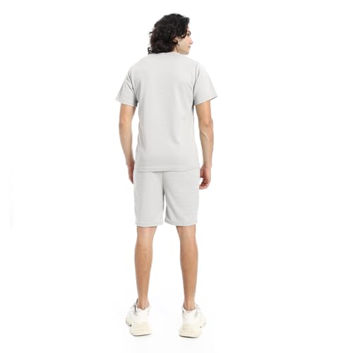Red Circle - Red Circle Mens Pique Pattern Slip On T-Shirt And Shorts Set - Cloud Grey Pique Pattern Slip On T Shirt And Shorts Set