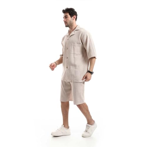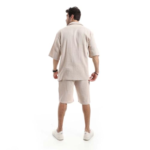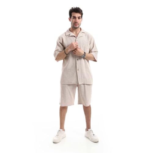 Red Circle - Red Circle Mens Turn Down Collar Elastic Waist Shorts Set Turn Down Collar Elastic Waist Shorts Set