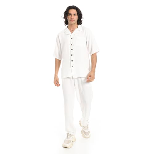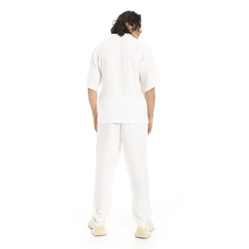 Red Circle - Red Circle Mens White Linen Turn Down Collar Shirt And Pants Set Shirt and Pants Set