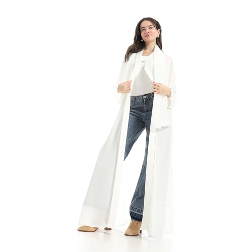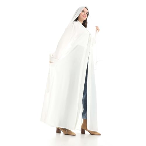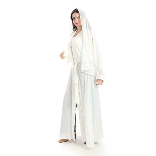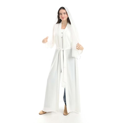 Red Circle - عباية توين انيقة سادة برقبة مفتوحة للنساء من ريد سيركل بلون ابيض مع حزام ابيض