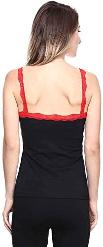Generic - بيجامة قطن للنساء مع بلوزة طويلة باللون الاحمر والاسود