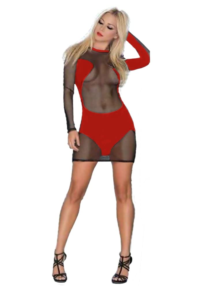 Generic - لانجيري مصمم باللون الاحمر مع بتلات باللون الاسود للنساء