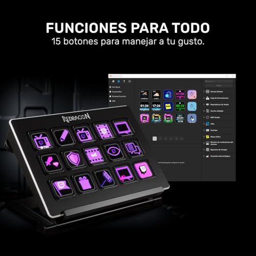 Redragon - كيبورد ريدراجون بتوصيل USB موديل ستريمكرافت SS550 مع شاشة LCD ومفاتيح قابلة للبرمجة باللون الأسود متوافق مع الكمبيوتر بواجهة إنجليزية