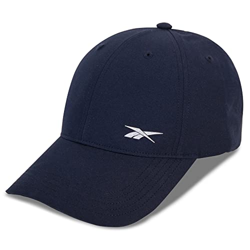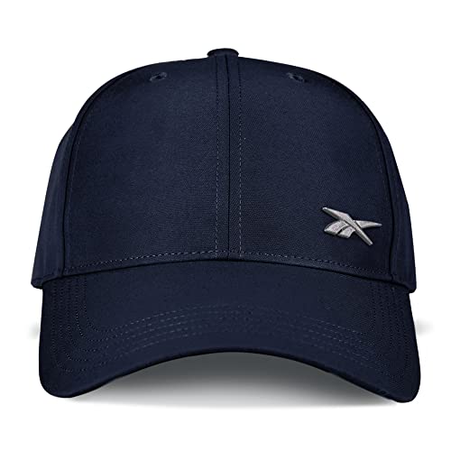 Reebok - طاقية بتصميم بسيط من مواد معاد تدويرها مزينة بشارة معدنية كاب مكون 6 لوحات مزود بمسامات للتهوية وحافة منحنية متوسطة الطول ريبوك للبالغين الجنسين