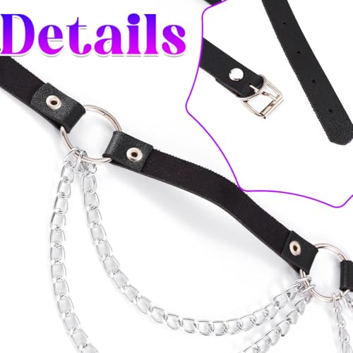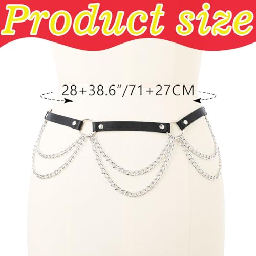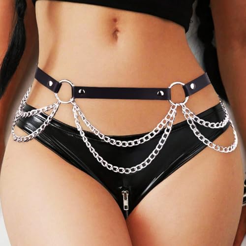 REETAN - ريتان سلاسل للجسم من الجلد بنمط بانك بلون اسود، سلسلة خصر بطبقات للملهى الليلي، سلاسل بطن للنساء، اكسسوارات مجوهرات للجسم للحفلات للنساء، قطعة واحدة (عبوة من قطعة واحدة)، جلد معدني غير ثمين
