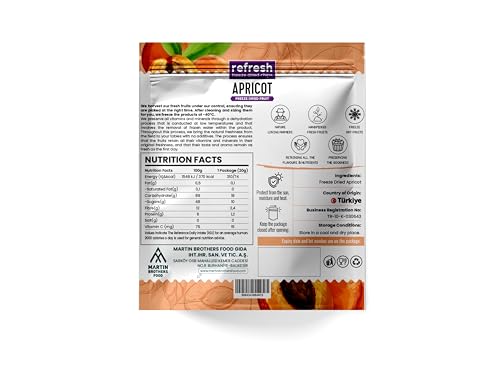 - وجبة خفيفة صحية: شرائح ريفريش فريز دراي من المشمش المجفف بالتجميد هي وجبة خفيفة مغذية وخالية من الذنب، مصنوعة من فاكهة حقيقية تمنحك المذاق الطبيعي والنكهة الأصيلة في كل قضمة.