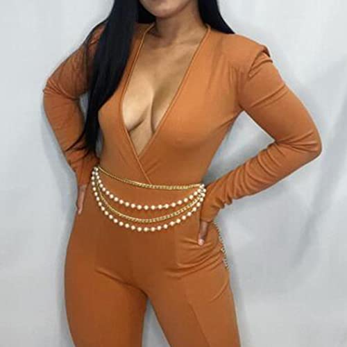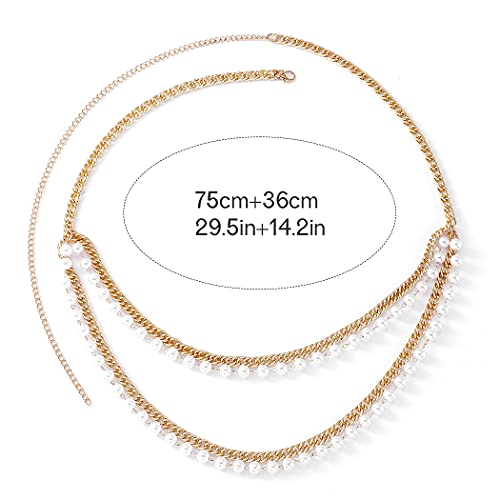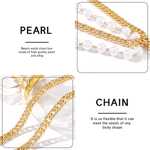 RELBCY - ريلبي سلاسل خصر من اللؤلؤ بنمط بوهو، سلاسل ذهبية للبطن والجسم للصيف، اكسسوارات مجوهرات للنساء والفتيات