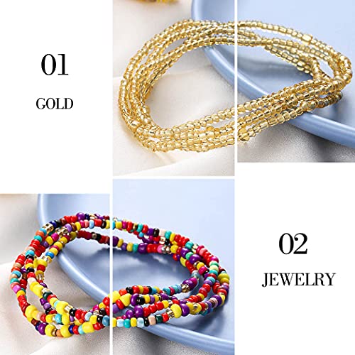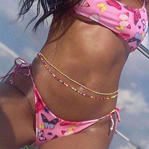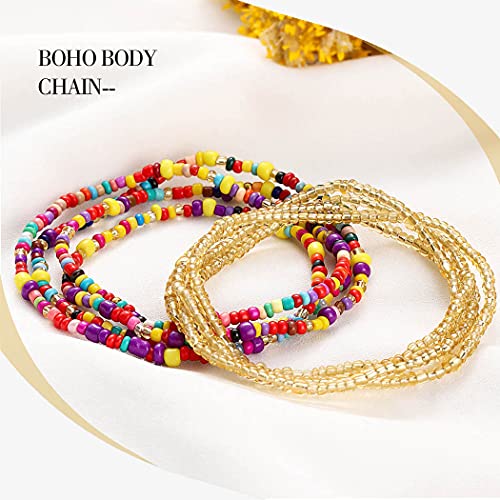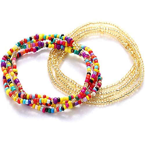RELBCY - سلسلة خرز خصر بطبقات من Relbcy Boho ملونة مرنة بطن مطرز بالخرز سلاسل الجسم على الخصر للشاطئ إكسسوارات مجوهرات للنساء والفتيات قطعتان (النوع 2)