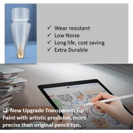 • 【سن من البولي ايثيلين صديق للبيئة】 سن القلم مصنوع من البولي ايثيلين الناعم، لا ينزلق ولا يسبب الخدش ويقلل الضوضاء. كما أن البولي ايثيلين الناعم يجعل سن قلم ابل أكثر متانة ويدوم طويلًا أكثر من سن القلم الأصلي، مما يوفر لك الكثير من التكاليف.