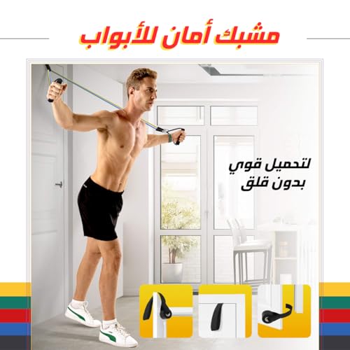 Generic - حزام مقاومة، أربطة تمرين رياضية للياقة البدنية مع مثبت باب، مستويات مقاومة من 4.5 إلى 22.6 كجم، من خفيف جدًا إلى قوي جدًا.