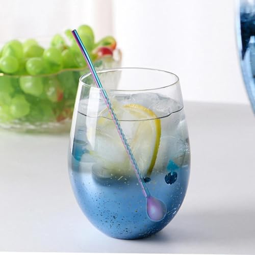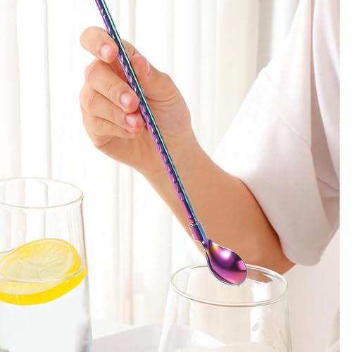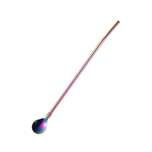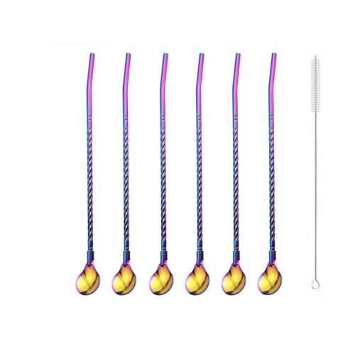 Generic - معالق قوس قزح قابلة لإعادة الاستخدام مع مقبض ماصة، مصنوعة من الفولاذ المقاوم للصدأ مطلية بألوان قوس قزح، - مجموعة من 6 قطع مع فرشاة تنظيف لسهولة الصيانة وتجربة تناول طعام صديقة للبيئة
