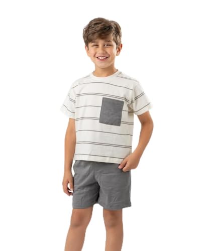 RFA - طقم بيجامة مخطط نصف كم للاولاد من ار اف ايه مصنوع من قماش ناعم وجيد التهوية بمقاس مريح لعمر 8 سنوات، متعدد الالوان