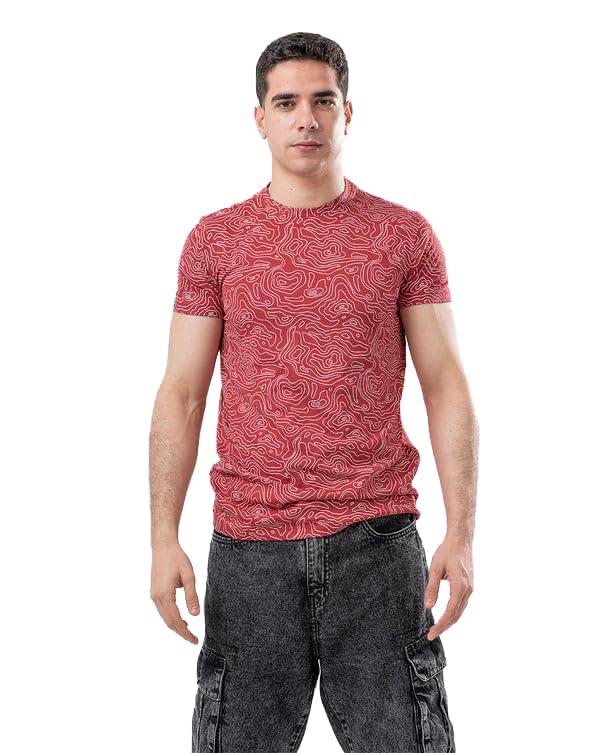 RFA - تيشرت باكمام قصيرة مطبوع للرجال من ار اف ايه، مقاس XL، احمر