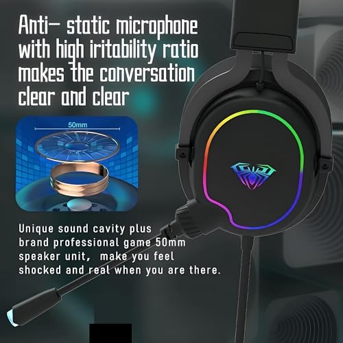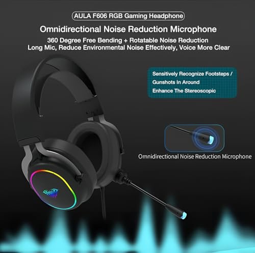 Generic - هيدفون جيمنج سلكية باضاءة RGB ومايكروفون مدمج - صوت ستيريو محيطي - كابل 2.1 متر - تصميم عملي ومريح - موديل F606
