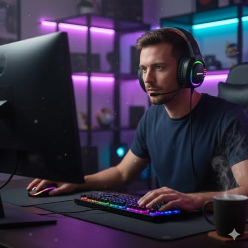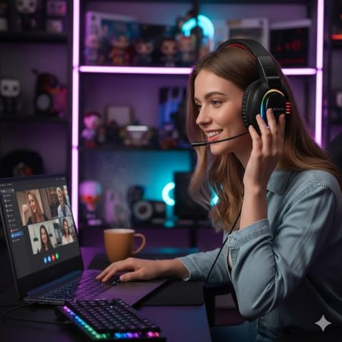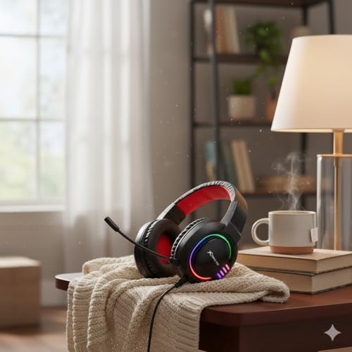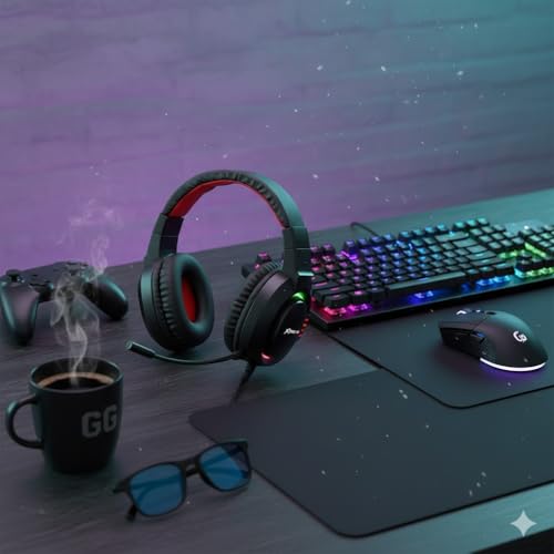 • سماعة ألعاب سلكية بإضاءة ار جي بي بصوت ستيريو عالي الدقة