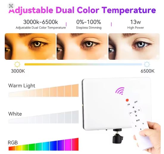 Generic - كشاف ليد RGB كبير , لتصوير الاستوديو والتصوير الفوتوغرافي والفيديو 3200-5700 , ذات اضاءة قوية لخلق اجواء مختلفة فى ستوديو التصوير , لكل صناع المحتوى .