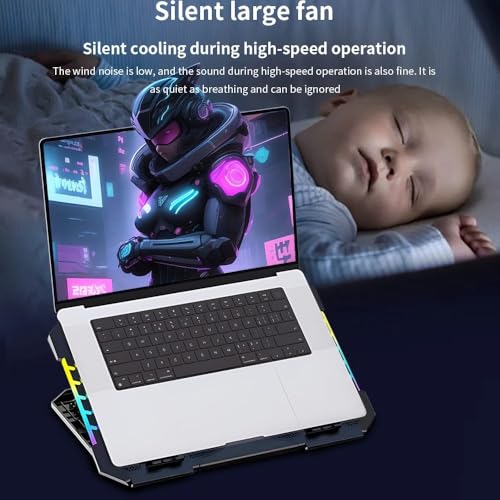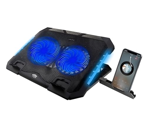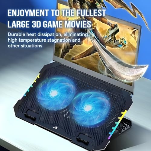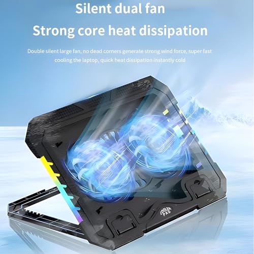 Generic - مروحة لابتوب احترافية للالعاب باضاءة RGB مع حامل موبايل مدمج - مروحتان كبيرة مع 7 مستويات لتعديل الارتفاع - جيرتيك KL332