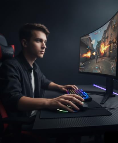 - ماوس ألعاب سلكي بتصميم مريح مع سطح مضاد للانزلاق لثبات أفضل أثناء اللعب والاستخدام الطويل.