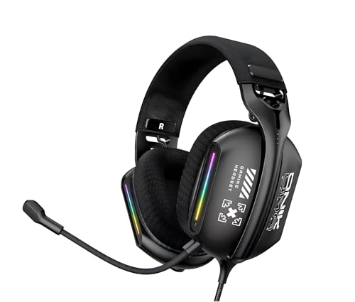 Generic - سماعة رأس للألعاب مع إضاءة ار جي بي، صوت عالي الجودة مع تقنية إلغاء الضوضاء، قابلة للتعديل ومريحة للاستخدام لوقت طويل، منفذ USB 3.5 ملم، موديل X12 من أونيكوما