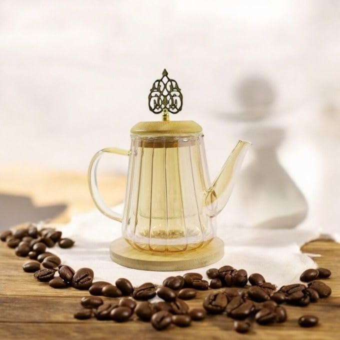 - غطاء خشبي يحافظ على درجة حرارة المحتوى داخل الإبريق.