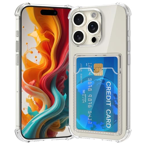 RIERBUBU - جراب حماية من ريربوبو متوافق مع آيفون 16 برو ماكس مع حامل كروت، جراب محفظة شفاف رفيع وناعم مضاد للصدمات ومضاد للخدش لموبايل آيفون 16 برو ماكس