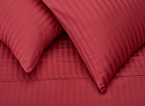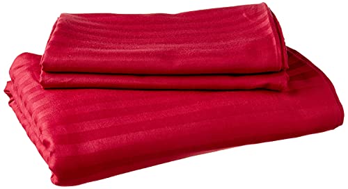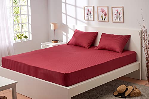 Rosa Home - طقم ملاية سرير قطن سادة بشرائط من روزا هوم، 3 قطع، 220×240 سم - نبيتي، احمر، مزدوج/كامل