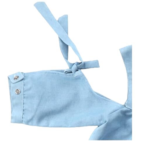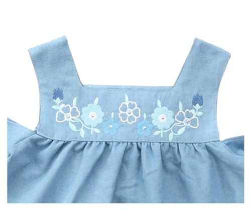 SIKA - بلوزة جينز سيكا نصف كم مكشوفة الكتفين ومطرزة بالزهور للبنات من روزد جاردن سيكا - لون أزرق فاتح - 14 سنة